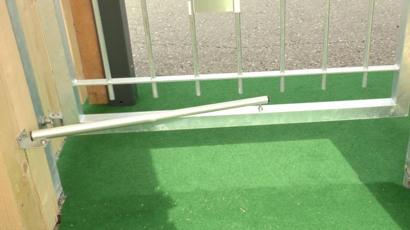 Ist wie in diesem Beispiel der Abstand des geöffneten Tores zur Wand praktisch null, ist es von Vorteil wenn der Schließer samt Winkel Platz zwischen den Dekorelementen findet. Denn steht das Tor am Winkel bzw. am Schließer an, kann es keine 90° mehr geöffnet werden. Ist das nicht möglich den Schließer zwischen den Elementen zu montieren, kann er auch über dem Tor montiert werden, damit eine Öffnung von 90° gewährleistet ist.