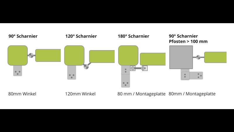 Um herauszufinden, welcher Winkel für Ihr Tor am besten geeignet ist, sind die Scharniere entscheidend.